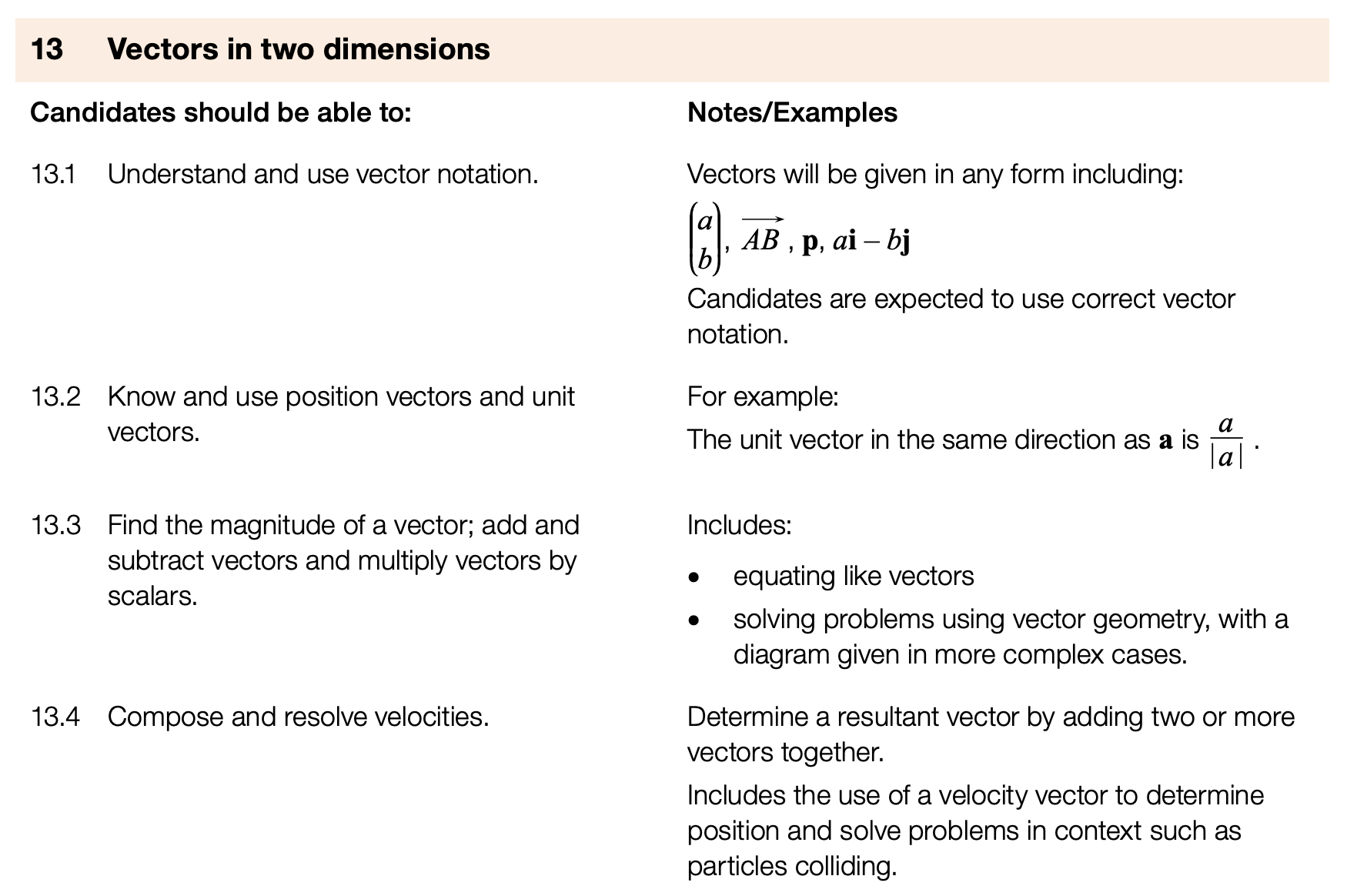 • Unit 13: Vectors