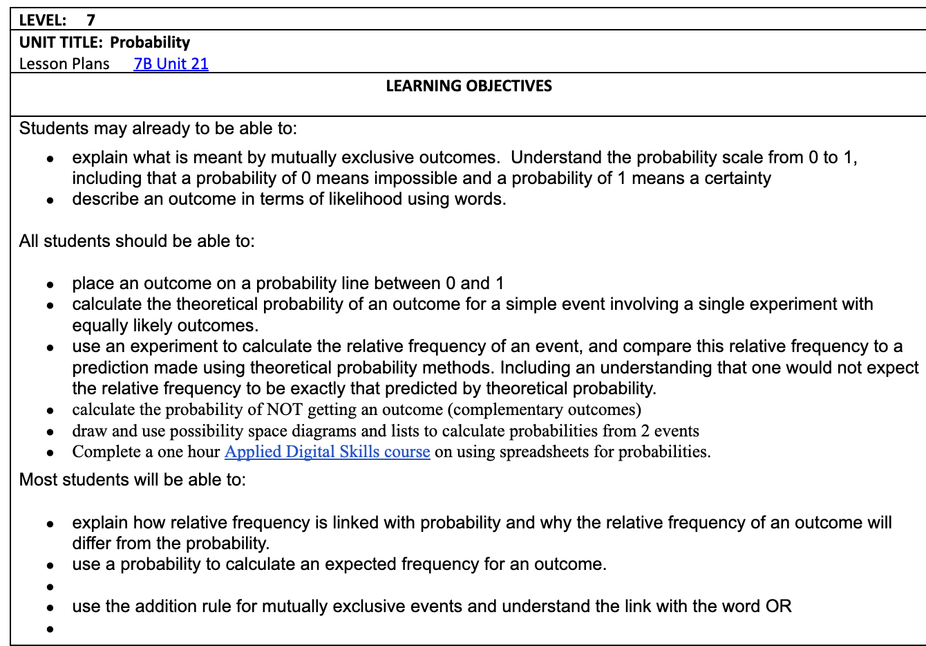 Understand the probability scale from 0 to 1, including that a probability of 0 means impossible and a probability of 1 means a certainty. Describe an outcome in terms of likelihood using words.
